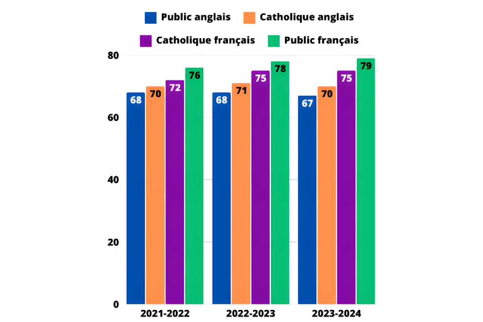 Les écoles sont gérées par l’un des 4 conseils scolaires laïcs et le Consortium Centre Jules-Léger.
